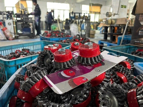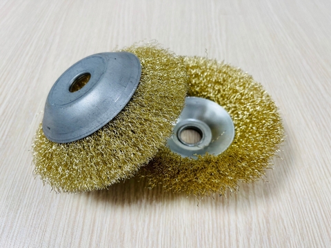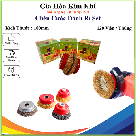 Chén cước 125 là loại chổi đánh rỉ, có hình dáng như một chiếc “chén úp ngược”, phần cước thép được gắn cố định lên bát sắt – thường được gắn vào máy mài góc hoặc máy khoan để đánh sạch rỉ sét, sơn cũ, vảy hàn, bụi bẩn trên bề mặt kim loại.