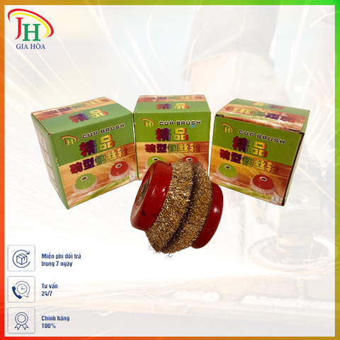 Chén cước đánh gỉ 100mm màu đỏ được làm bằng chất liệu thép bền đẹp, cứng chắc, không bị ăn mòn, cho thời gian sử dụng lâu dài. Lông chải bằng cước dày chắc, ít bị gãy rụng, giúp tăng độ bền cho sản phẩm.