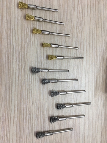 Đầu Cước Bút đánh rỉ sét mini trục 3mm sợi thép đầu chụm, xòe, đĩa gắn máy khoan điện cầm tay