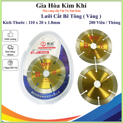 Lưỡi cắt bê tông 110mm là công cụ không thể thiếu trong ngành xây dựng và cơ khí. Với thiết kế 2 màu xanh và vàng, người dùng dễ dàng chọn lựa sản phẩm phù hợp với nhu cầu và ngân sách.